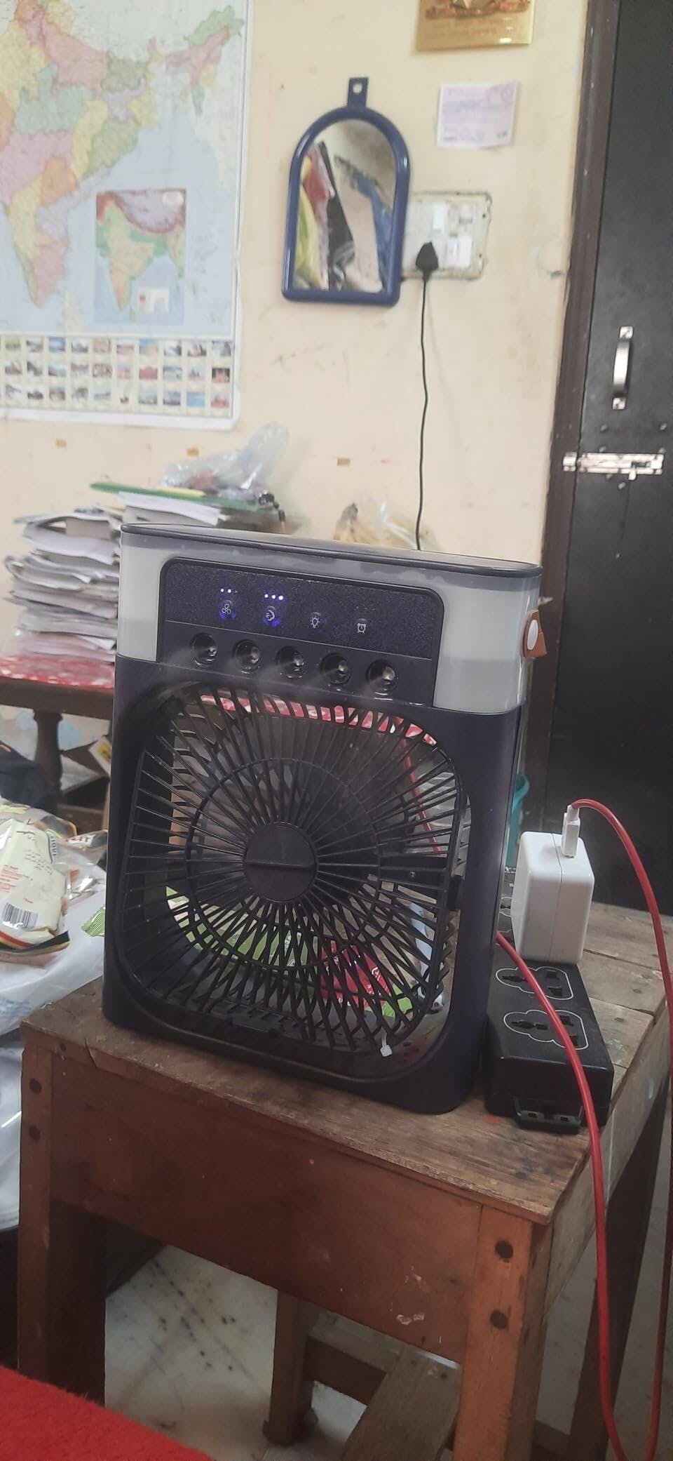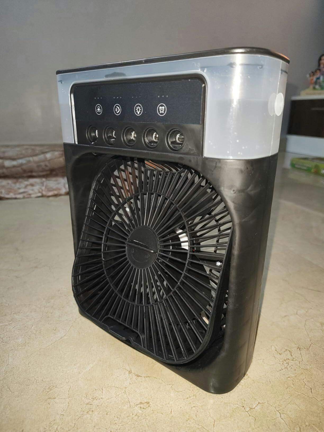 Great little cooler for personal use! The double-ended spray and 3-speed fan give a refreshing breeze, especially with ice water. Love the LED light and remote control — super handy. Compact, quiet, and rechargeable. Perfect for desk or bedside in summer!